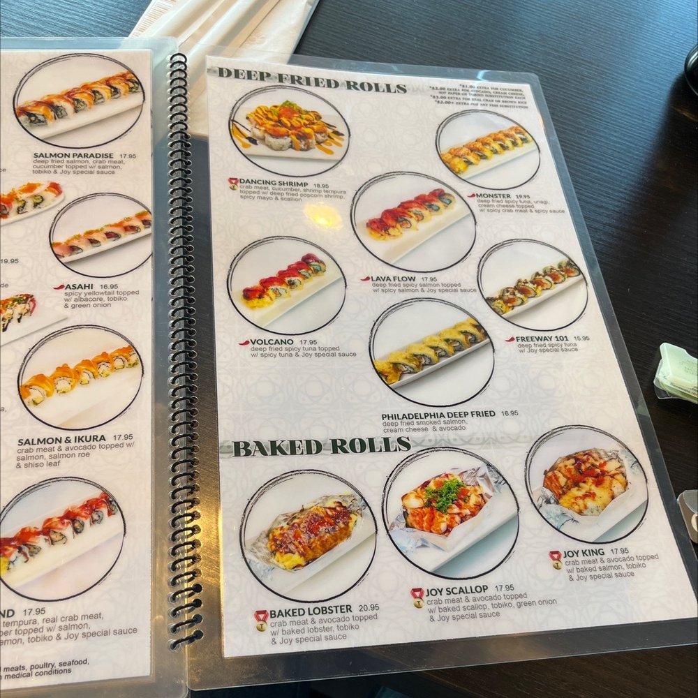 The menu boasts a variety of mouthwatering options, from spicy tuna crackers to expertly crafted bento boxes. Standout dishes include the Unagi Donburi, featuring tender eel draped in a zesty sauce, and an array of fresh sashimi. Perfect for a casual night out or a cozy dinner with friends, Joy Sushi's vibrant ambiance and attentive service create a welcoming dining experience.